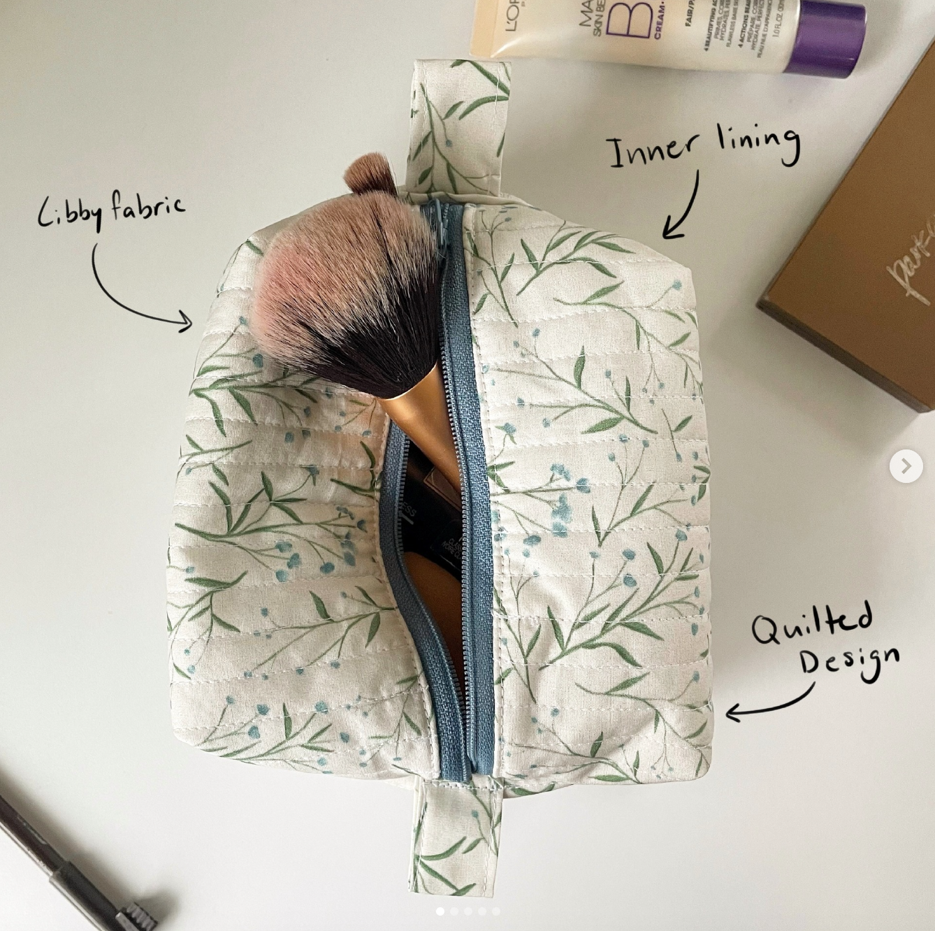 Makeup bag sewing project for beginners interested in working with zippers
