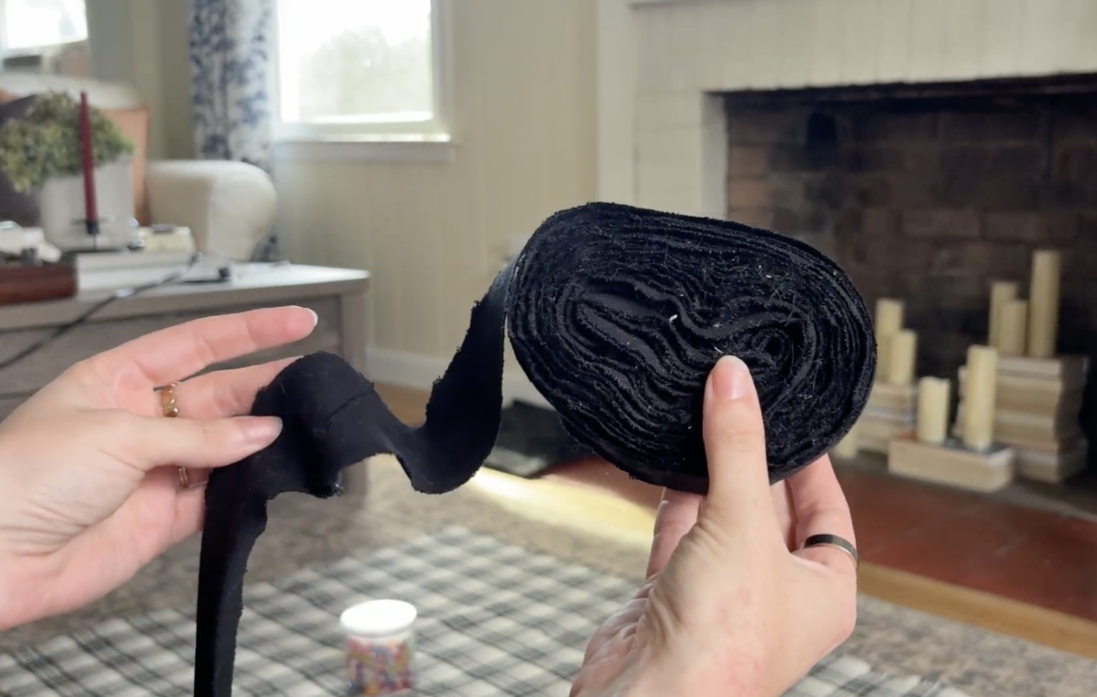 Once the two fabric pieces and batting were sewn together I needed to make a very very long strip of bias tape to wrap around the blankets raw edges. I could have used any color for the trim but I liked the idea of keeping this neutral to match whatever style he wants his bedroom. I used a yard of black fabric and made a whole lot more bias then I needed but since its a solid black I know I can use this on future projects. To make bias you cut the fabric sideways with the stretch of the fabric and then sew all the of the strips together on a diagonal. The strips were cut two inches wide to give enough room for the bias to fold over the blanket and for the raw edge of the bias to be folded in as well.